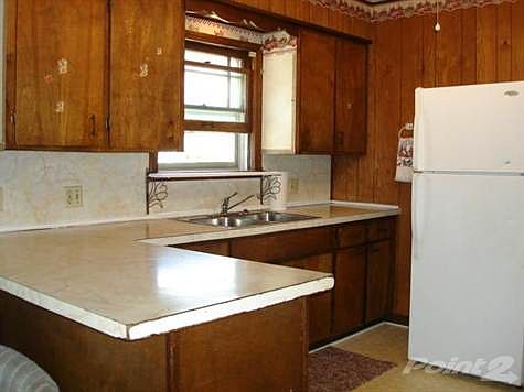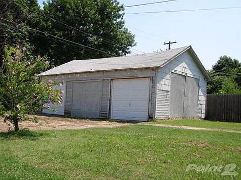 Great opportunity for anyone needing a three car garage/workshop on a corner lot. Neat 2 bedroom home with formal living and dining rooms. Enjoy the inviting covered porch for entertaining. Owners have just replaced the roof shingles and added new carpet in the living room and cleaned all other carpets. Inside walls have been freshly painted. Notice the neat older hardwood floors and ceiling fans in the living and dining rooms. Handy one room storage basement with floor drain.This cute home rented for $45 0 a month.