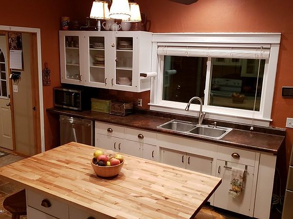Rare Find! Beautifully updated farmhouse style 5 bedroom, 3 bath home with newer finished basement and attached 2 stall heated garage. Newer electrical and mostly newer windows except 2 original grand leaded glass charmers. Fully fenced 10 acres with shop, chicken house, windbreak and Ritchie waterer. Property has SW water and a well. Marvelous view! Prepare to fall in love with this property the moment you drive though the head gate. Gas forced air, supplemental cove heat and pellet stove for heat. Pool table included. Even and extra washer hook-up for those really dirty work clothes.