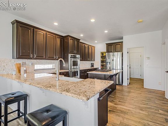 Discover the epitome of luxury living in this exquisite 5-bedroom home, where every detail has been meticulously crafted to create a haven of sophistication and comfort. The primary bedroom is a retreat within itself, boasting a wardrobe room with built-in wardrobe closet, gorgeous views, 2 walk in closets along with a spa-like bathroom featuring 2 vanities & luxurious soaker tub. With 6 bathrooms, an adaptable office, & open floor plan, this residence seamlessly blends elegance & versatility. Entertain effortlessly in the formal dining room, family room with a two-way fireplace that adjoins the office, and the spacious living room. The gourmet kitchen is a culinary enthusiast's dream, while the Rec Room beckons with a wet bar, 3-way gas fireplace, and walkout basement leading to the outdoor oasis. This home’s amenities cater to convenience for entertaining or quality time with the family, including a staging island with sink and dishwasher in utility room. A flex room offers endless possibilities as a gym or additional storage, while a separate room with a sink can serve as storage, a pet washroom, or an arts & crafts haven. Nestled on the golf course, the property offers captivating views & a private landscaped yard. Enjoy outdoor living on the expansive composite deck with a gas grill; a covered patio with 2 ceiling fans, mounted TV, LED lighting, & hot tub; & an uncovered patio with gas fire pit & seating area amidst two water features & meticulous landscaping. The yard includes garden beds, paved walkway, sprinkler system & drip lines to flower beds including 5 lines to beds on deck. NEW carpet! 2 Hot Water Tanks. EV 220V charger, coated garage floors & walkable attic storage above entire garage. Enjoy shopping, dining, schools, emergency services, & recreation within 3.5 miles/8 minutes or less. This extraordinary home is a true masterpiece, harmonizing luxury, functionality, & natural beauty in every detail. Don't miss your opportunity to make it Your Home!