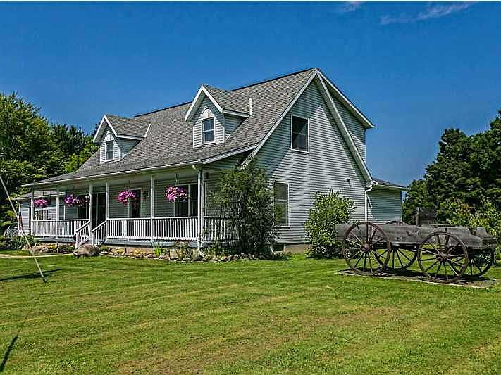 Enjoy peace & tranquility on this beautiful country property nestled on over 18 picturesque acres of gorgeous landscaping, trees, farmland, and pasture! Step inside to a meticulously maintained & updated home. First floor master suite, kitchen w/corian countertops, 4 season sunroom & more! 5 outbuildings & 2 car attached garage.