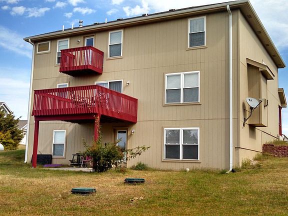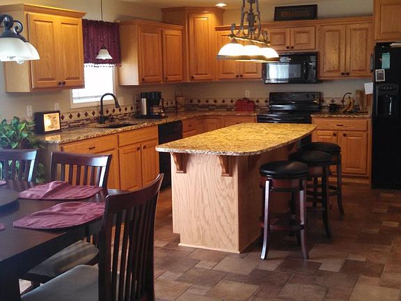 Beautiful sunsets & scenic view of Milford Lake from master bdrm. Hardwood entryway. This home features upgraded porcelain tile in kitchen, walk-in pantry & bath. New granite countertops have been added + glass tile backsplash, new sink/fixtures. Granite topped island has extra large surface to accommodate bar stools. Oak cabinets. Replaced lighting fixtures in kitchen & dining area w/Spanish silver w/taupe globes fixtures. Fireplace is focal point in living rm. New paint on first floor. Huge master bedroom suite. Large bdrms. One has walk-in closet. Carpet in bedroom areas. Washer & dryer located on 2nd floor bedroom area. New carpet in walk-out basement. Basement has been recently painted. 4th conforming bedroom. Full bath. Tree-lined privacy screen, fire pit, 2 decks.