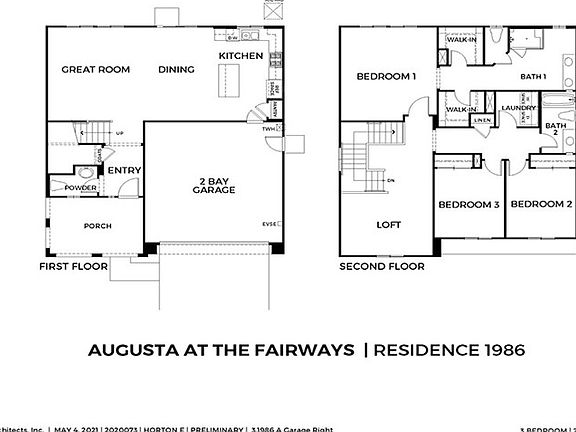 NEW CONSTRUCTION - SINGLE-FAMILY HOMES – One of the most popular floorplans awaits you in the gorgeous community of Augusta at the Fairways, featuring a resort-style pool, clubhouse, fitness center, junior Olympic lap swimming pool, a splash park, playgrounds, multiple parks and an elementary school. This right-sized, 3 Bedroom, 2.5 Bath Residence 1986 floor plan offers it all - a welcoming covered porch and large entry that opens to a generous, open concept Great Room, Dining and Kitchen space, a well-appointed, gourmet Kitchen with large center island, granite counter tops, stainless-steel appliances and beautiful cabinetry. Upstairs, an oversized Loft lends a perfect space for studying or lounging and leads to two, spacious bedrooms and a convenient laundry room space. The large Primary Suite and bathroom with two, walk-in closets, oversized walk-in shower and dual sink vanity with stone counters offer a luxurious retreat. You get all this on a spacious large lot primed for your imagination and endless backyard entertaining! There are more amazing features such as "Americas Smart Home Technology" LED recessed lighting, tank-less water heater and much more.
