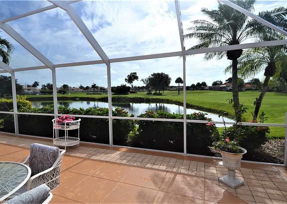 MOVE IN READY ! ! CAN BE PURCHASHED TURNKEY FURNISHED ! ! UPDATED END UNIT AUGUSTA MODEL WITH GORGEOUS AND PRIVATE LAKE AND GOLF COURSE VIEWS. LARGE EAT IN KITCHEN WITH GRANITE AND WOOD CABINETS, TILE FLOORS THROUGHOUT, CROWN MOLDING, WOOD BURNING FIREPLACE, MASTER SUITE WITH PRIVATE COURTYARD, OVERSIZED SCREENED LANAI, 2.5 CAR/GOLF CART GARAGE AND SO MUCH MORE, SOCIAL MEMBERSHIP INCLUDED FOR ALL HOMEOWNERS. AFFORDABLE GOLF DUES ARE OPTIONAL. CLUBHOUSE WITH RESTAURANT, OUTDOOR BAR, PRO SHOP, POOL, TENNIS AND PICKLE BALL.