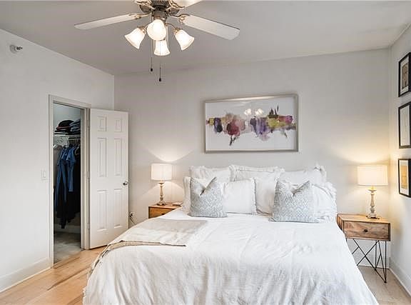 Prized Tomahawk Creek location within walking distance of Town Center! Beautifully updated second floor unit with gorgeous hickory wood floating floors and quartz counter tops. Master bedroom has two huge walk-in closets. Private balcony looks out over the lake and park. Best setting in the complex if you're looking for privacy and convenience. Reserved parking space right outside your door. Beautiful clubhouse and pool to go along with the many Tomahawk Creek HOA amenities. 2022-02-25