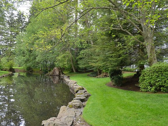 Beautifully maintained condo with view onto Millers Pond. Private 2 level end unit. Great living space on main floor: Kitchen, Dining, Living w/fireplace, 1/2 bath & balcony. 2 good size bedrooms upeach with own bath. Master w/walk-in closet. Full size W&D. Plenty of storage spaces, 1 car garage + 1 assigned parking. Large windows for great light. Super clean & move in ready. A well maintained community. Just 5 min. from Boeing & I5. Rental cap not met. Best value in complex. Must See!