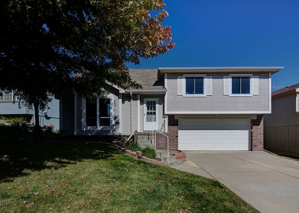 Beautiful Millard multilevel features an open floorplan with Soaring ceilings, 2 gas fireplaces, new carpet and laminate flooring, new ceramic tile floors in the baths, master bath has double sinks, fresh interior paint - neutral colors throughout, walk-out basement, vinyl triple pane windows & sliding glass doors, fully wood privacy fenced backyard with a stone patio, easy access to I80 and walking distance to the neighborhood park. All appliances are included! All measurements are approximate.