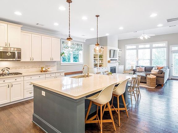 - Kitchen Features: Breakfast Bar, Eat-in Kitchen, View to Family Room, Kitchen Island, Pantry Walk-In, Solid Surface Counters, Cabinets White