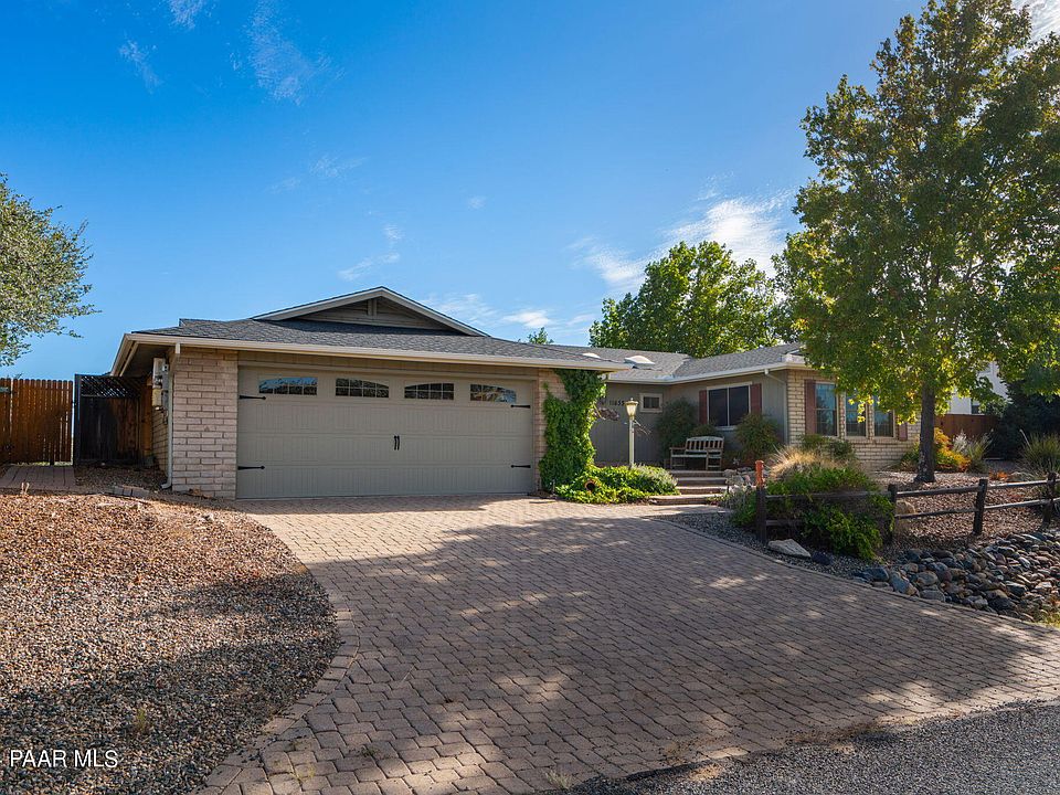 Beautifully maintained home in Prescott Country Club! 3 bedrooms, 2 bathrooms, 1985 square feet, and 2 car garage. Spacious family room featuring a cozy brick hearth fireplace, perfect for these chilly evenings. Beautiful kitchen with ample storage and countertop space. Large formal dining area with deck access if you prefer to dine al fresco. Laundry room with convenient utility sink. Generously sized primary bedroom boasts a large walk-in closet and ensuite bathroom. The Arizona room exits to a fantastic partially covered wood deck out back. Entertain family and friends in the fenced backyard with propane fire-pit, mature shade trees, and mountain views. Subdivision amenities include a club house, fitness center, pool, restaurant, and public golf course. Schedule a showing today!