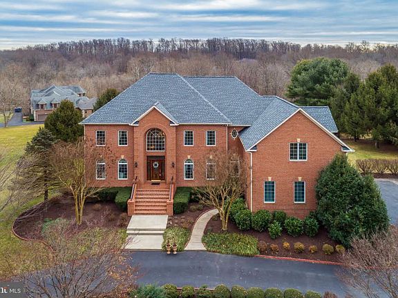 Ideal cul-de-sac location and a landscaped yard presents this stately 7,386+ square foot manor perfectly set on a 1.07 acre homesite in Quarterfield! An Impressive 2-story foyer with curved staircase welcomes you inside to find beautiful hardwoods, exquisite moldings, architectural detail, radiant natural light, and an office complete with a granite wet bar and floor to ceiling built-ins. Formal living room features an ambient gas fireplace, followed by the formal dining room enhanced by profile crown molding, wainscoting, a ceiling medallion atop the chandelier heightened windows, and a butler's pantry for ease in serving. Family room with heightened windows with panoramic views, a walk out to the deck, and a raised hearth stone fireplace. Chef's kitchen is equipped with stainless steel appliances, sleek quartz counters, custom tile backsplash, 42" cabinetry, an expanded center island with breakfast bar, a work station, and bright breakfast area with access to the tiered deck overlooking the backyard. HUGE owner's suite presents a sitting room, tray ceiling, two walk-in closets, a dressing area, marble surround fireplace, and lavish bath displaying dual vanities, a glass enclosed shower with custom tile work, and a jetted tub. Finished walkout lower level hosts a rec room, loads of windows, a bedroom, full bath, extra storage, and walkout to the paver patio with built-in seating and a landscaped backyard.