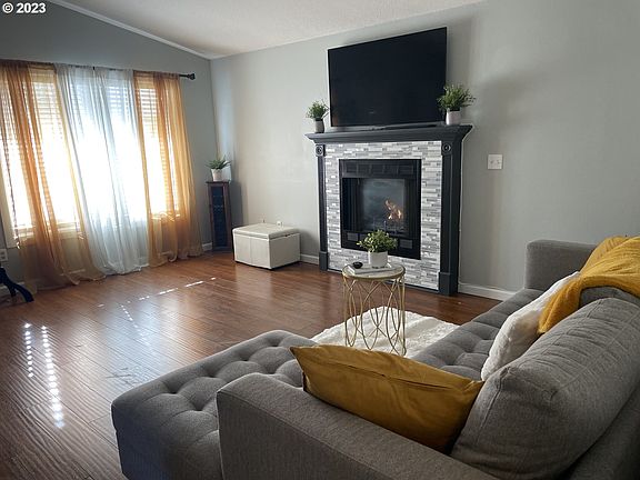 Beautiful, well-maintained 1-level, ranch home on corner lot, great RV, paved parking. New Wood Fence, New Work-Shop/Office in back w/power, Brand New Carpets in Bedrooms, New Vinyl Floor in Kitchen, Lovely fenced patio & garden w/front porch for your morning coffee. 2 large car garage, vaulted ceilings, ceiling fans, ALL APPLIANCES STAY: Newer Fridge, Stove/Oven & Dishwasher, Washer/Dryer, Newer Hardy Plank Siding (2019), New 30-Year Roof & Gutters in 2018, Water Heater-2017, Upgraded Fireplace Mantle & Surround, raised garden beds. Just a lovely property. Seller to pay $5,000 towards Buyer's closing costs with full priced offer. Seller is moving out of state and will leave any and all furniture the Buyer(s) may desire - at no cost.Move-in Ready. Make this house your home!! [Home Energy Score = 8. HES Report at https://rpt.greenbuildingregistry.com/hes/OR10191781]