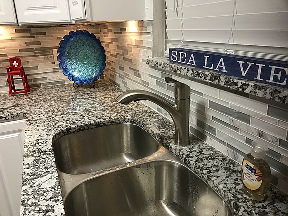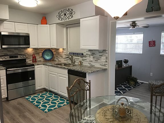 This absolutely beautiful, beachy home has been remodeled top to bottom and is central to everything! It has a new roof, new A/C, new kitchen with Granite coutertops, backsplash, cabinets, and under cabinet lighting, along with new stainless appliances. The bathroom has new tile with mosaic trim, new vanity, toilet, vanity mirror and lighting. Ceiling Fans throughout! The light gray laminate flooring gives it a bright, airy feel.