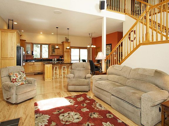 Beautiful home set on 3 acres amongst trees in a park like setting. Flooded with sunlight this 4 bedroom 4 bath home is centered around a large family style kitchen complete with a magnificent island and walk in pantry. From the kitchen you can access the deck overlooking the forest and the back yard. This home is move in ready complete with newer paint, carpet and fireplace insert. Three oversize bedrooms have walk in closets. The basement if finished with 9' ceilings and ready for you to choose your type of flooring You will not believe the shop/barn complete with heat, concrete flooring, shelving and a bathroom. It is completely finished and has many uses. There is a fenced garden area, chicken coop and fenced dog run. If your wanting privacy and a place to retreat to this is your home.