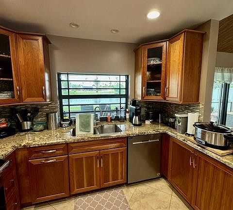 Beautiful lake front home with a 2/2 split floor plan with no HOA in a quiet family neighborhood. Home has impact windows and doors, a new roof, an extra room either for another bedroom, den, or playroom. Vaulted ceiling, open updated kitchen, large, covered patio, with an inviting jacuzzi, spacious open back yard offering a tool shed and room for a pool. Quick connection hook-up for generator, sprinkler system on 3 zones, new air conditioner, new hot water heater, stamp concrete driveway. Parks nearby and easy access to highways, supermarkets and minutes to sawgrass mall that offers shopping and restaurants.