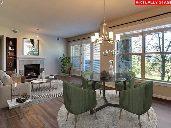 Luxury Condo in the heart of Happy Valley with private, yet open views of green space and pathways! One level living, open design w/ 10' ceilings & large windows to let all the natural light flow through from the west side of town! French doors off the living space and balcony! Cherry cabinets and built-in throughout, granite kitchen eating bar, Stainless Steel appliances, newer heat pump, window coverings, Luxury Vinyl Plank floors, Primary suite bath with custom walk in shower, marble counters, and walk in closet. Newer Paint throughout! Secured entrance to building & lobby, attached one car garage with shelves. Ready for quick move in, and includes S/S Fridge & Washer and Dryer!! HOA includes internet, cable tv, ext. maintenance, water, sewer, garbage, weekly rounds of golf or mini-golf, access to fitness center, landscaping maintenance on Monterey. This is living at it's best with super low maintenace & just minutes to fine dining, shopping, Kaiser Hospital, coffee shops, and entertainment! Only 20 ish mintues from Airport, easy access to I-205 and light rail. Living here offers a lifestyle of ease, luxury and all the amenities a homeowner could want! Welcome home just in time to enjoy summer in the Valley! Live where you play, and play where you live!