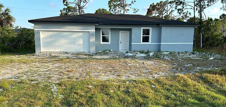 Under Construction. The property’s price is based on the current stage of construction, which is 81% of completion. This property has an active and transferable building permit. Electrical, plumbing, and HVAC systems are already completed, and the structure is in an advanced stage of construction—ready to be finished to the new owner’s specifications. If the buyer wants to finish the construction with our builder we have a preferred lender to provide financing and the remaining cost is $60,150. This stunning new home will feature 4 bedrooms and 2 bathrooms in a peaceful, well-located neighborhood, with an attached 2-car garage and elegant paver driveway. The smart two-way split floor plan offers privacy and comfort, with modern waterproof vinyl flooring throughout. The open-concept kitchen includes granite countertops, upgraded cabinets, and a stylish backsplash—ideal for both daily living and entertaining. The master suite provides a spacious retreat with a walk-in closet. No HOA, no CDD, and no restrictions—experience the freedom to make this home truly yours. A prime opportunity for investors and homeowners alike!