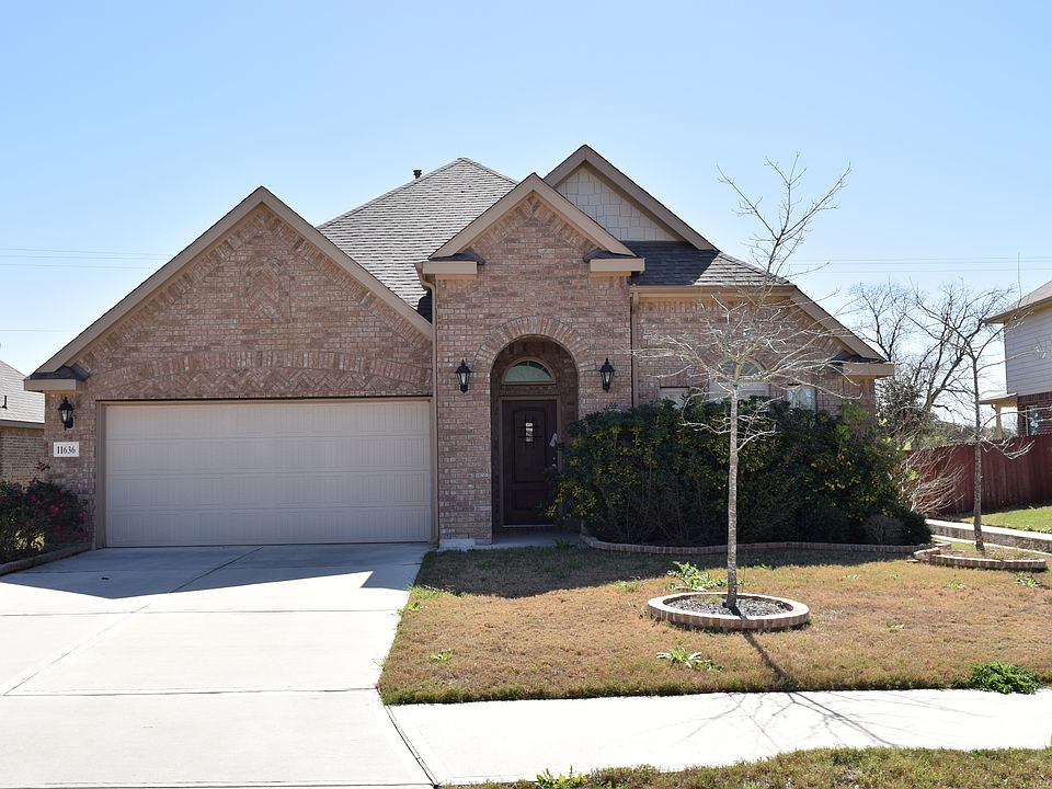 The Medina features 4 bedrooms and 3 baths on one story. The kitchen includes a dine-in nook, and the spacious master bath leads to a large walk-in closet. A covered patio is behind a bank of windows in the family room.