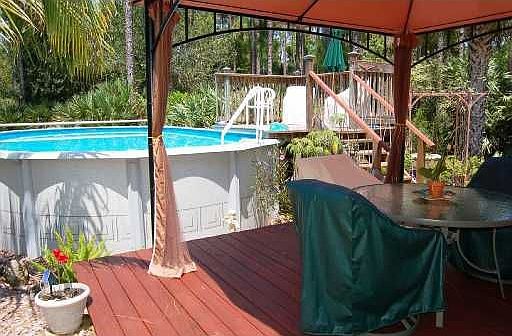 Two houses for the price one, 800 square feet guest house with two bedrooms and a huge living room, including 100 inch screen and projector, wired with network cable for office and wired for home theater through the ceiling, a must see. Two homes for the price of one, Beautiful lot, fenced and gate in the front and also cross fenced in the back, nice front door with stain glass, indoor laundry room with sink, Master bedroom completely renovated and has tub and shower with double sinks, 10 X 10 cedar closet and wainscoting with chair rail, formal dinning room, all floors are wood and ceramic tile, except for bedroom with carpet replaced 3 years ago and one with vinyl floor, open kitchen with lots of cabinet space and room for breakfast area and newer appliances, two sky lights in kitchen and living room for additional lighting, built in speakers, water softener owned with arriator, energy efficient AC with 16 seer rating, hurricane shutters, family room all tiled with sliding glass doors to the patio which is all beautiful decking oversized and covered, additional decking built around the hot tub giving more space for entertainment. fenced dog run which is cemented to keep the dogs in, wishing well in the back, The guest house is finished and has two bedrooms and a very large living room, perfect in law quarters, wired with network cable for office, also wired for home theater through the ceiling so all cables are hidden, also included is 100 inch screen and projector to convey. Nothing not to like, will not last. All measurements are approximate.Easy to show.only one lender,commission subject to approval