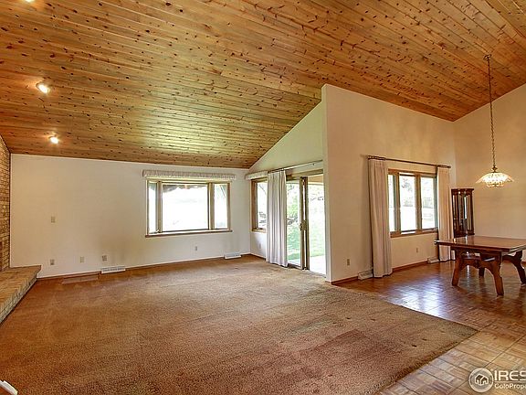 Your future home sits in a quiet cup-de-sac, on the 1st Tee of the golf course, and offers unobstructed views of the Mountain Range and Longs Peak! Main level has vaulted Pine shiplap ceilings, spacious Living Room with fireplace, Dining Room, eat-in Kitchen with granite-slab countertops. Upper level has Master Suite with fireplace, private deck overlooking gold course, and private 5-piece bath. Lower level Family Room with 3rd fireplace and sliding doors to professionally-landscapes back yard.
