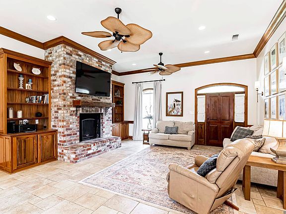 Cypress built-insAmple storageHuge backyardOversized closetsSolid cypress kitchen cabinetsBeautiful brick fireplaceTile and wood floors