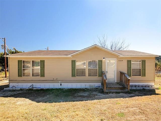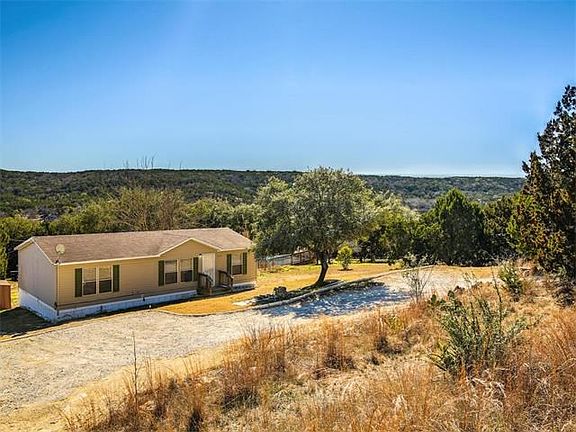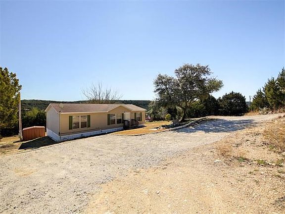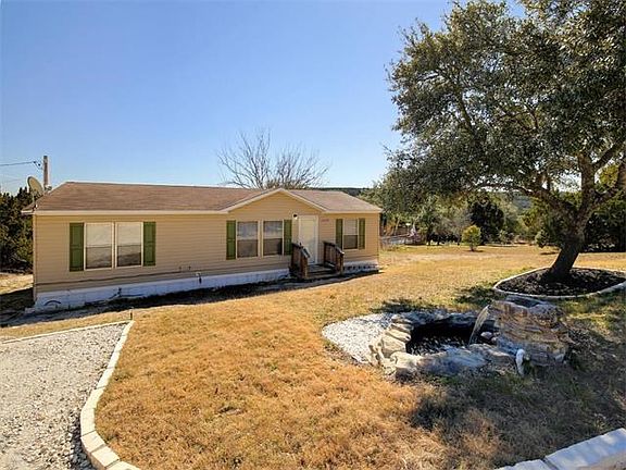 3 bed 2 bath doublewide mobile home on 1 acre with gorgeous hill country views. No restrictions, horses allowed. Recent AC and roof. Septic pumped in September 2016.