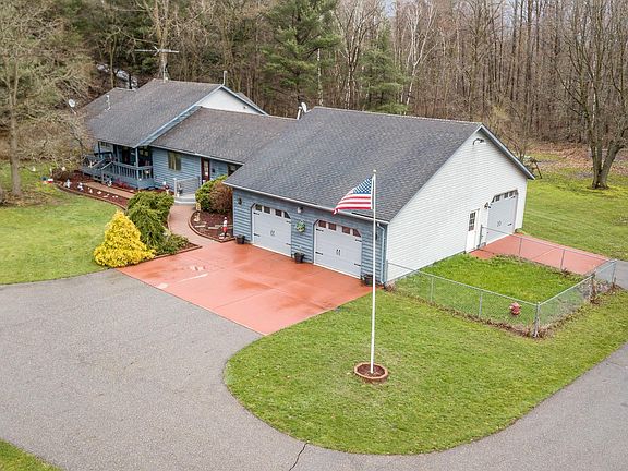 Need Space? for a large family, the in-laws, a home business, or just room to stretch, we have it (except...the Butler is not included). This sprawling ranch has 5 BR's, an office, 2 large living areas, 2 full & 2 half baths, 3-4 car attached garage, lg. pole barn, outbuilding, brand new roof...all on 14 acres. Almost 3,000 sq. ft. on one level with high ceilings, sun drenched rooms to enjoy the surrounding nature and great outdoor entertainment space. The 40x72x14 pole barn was built in 2014 and has a small office, loft and overhead door for most campers or motorhomes to enter. The 24x64 outbuilding has 2 sections for add'l storage or workshop areas. The attached 30x40 garage has 3 overhead doors and stairs leading to a storage attic. A Generac generator services the house and outbuildings during power outages and an alarm system is in place for added safety. Septic replaced in 2020. The seller to retain the refrigerator, washer and dryer. The 5th BR does not have a closet.