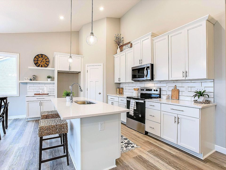 Stunning new construction rambler built by Inspire Homes offers all professional designer selections! Kitchen includes center island, walk in pantry and many extra built-in cabinets. Open concept living area with vaulted ceiling and tiled gas fireplace with mantel. Owner's suite with walk in closet and private full bath with tiled shower. Finished lower level with large family room, 3/4 bath and 2 additional bedrooms. Fully insulated 3 car garage and doors. Landscaping package & irrigation included. Energy efficient home! Looking for something different? Customize another new home with one of our many floor plans & lots to choose from. Many upgrades are standard with Inspire Homes....come and check out the difference. Love where you live...let us "Inspire" you along the way!