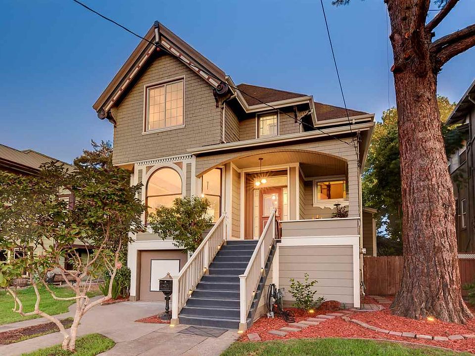 This gorgeous Queen Anne home on a large lot in the East End of Alameda has it all. The main entry takes you into a foyer with beautiful woodwork and both a parlor and expansive living/dining room with 12 foot ceilings, fireplace, hardwood floors, original ceiling medallions and beautiful period light fixtures. A tastefully remodeled full bath and large kitchen completes the main floor. Past the kitchen is a new deck and big fenced private yard with a massive magnolia tree that envelopes the area. A gorgeous wood banister and newly refinished staircase with a unique mural alongside of historic Williamsburg takes you up to the top floor that has 3 large bedrooms with period light fixtures and medallions, newly refinished wood floors and a remodeled full bathroom. Back down the staircase takes you to a remodeled basement area with a 4th bedroom, a half bath and loads of room for home offices. Fabulous location near the beach, restaurant, shops and movie theater.