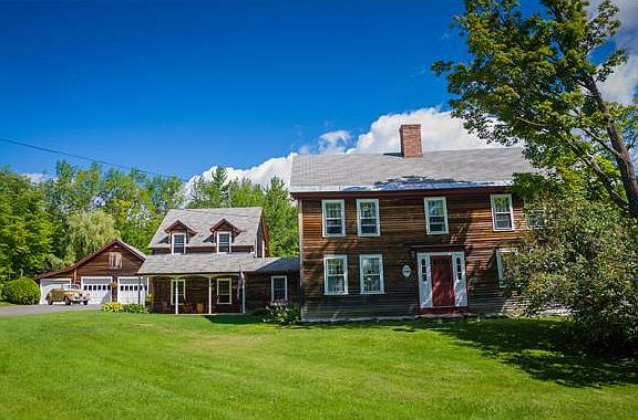 Tucked away on a beautiful country road, this unique 1790's modern farmhouse is surrounded by landscaped gardens and sweeping views of the large swimming pond. The cottage garden has a large variety of specimens, with two small frog ponds featuring a waterfall, lilies and lotus, as well as a Goshen stone patio. There is an invisible dog fence around the perimetry of the entire property. An outdoor deck provides intimacy with the land, the moon and passing clouds. The home has been renovated to keep the feel of a true antique. The updates include a two story artist's studio with a new mini-split. A completely renovated open chef's kitchen with SubZero, Wolf, and Miele appliances, Moroccan tile, custom cabinets, and Granite countertops, surrounded by windows with views of the gardens. There is a sunroom, filled with light and panoramic views. The large living room features wide pine floors, and a Morso fireplace insert for winter nights. There is a formal dining room that features wainscotting. Also on the first floor is a bright music/Zen themed room. There are 3 bedrooms and two fully renovated baths on the 1st and 2nd floors. The house has countless bookshelves and closets, even one for skis, as the house is 20 minutes from Mount Snow. The third floor is a wood beamed attic that could be transformed into a giant bedroom. An additional structure is a 3-car garage, loft space above, a shed for garden tools, and wood. This is an exceptional property that should not be missed.