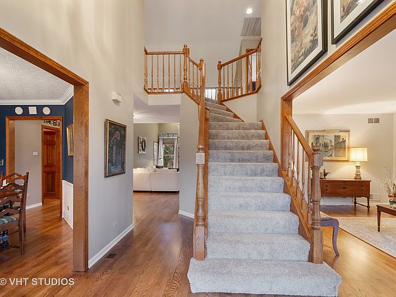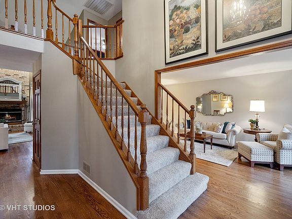 Location, location! This Versman custom built home sits among the tall Oak Trees in the charming and well established neighborhood of Patriot Woods, the heart of Cary! Surrounded by 5 miles of bike and walking trails to: all the schools, parks, athletic fields, sledding hill and Starbucks! Much of this 4 bedroom home has been updated! Highlights: hardwood floors, new carpet (2019) volume ceilings, 1st flr laundry/mudroom, 1st flr office, beautifully renovated master bath, eat in kitchen w/granite, serving island and SS appliances (2016). The inviting family room boasts of a wood burning fireplace w/gas starter and blower for extra warmth and floor to ceiling Hurd Windows. Additional features: finished basement w/lots of natural light, central vac. abundant storage. For outdoor entertaining enjoy 900 sqft deck and screened-in gazebo overlooking fenced yard w/mature trees and sprinkling system! You will love the community, 5 min to the Metra!