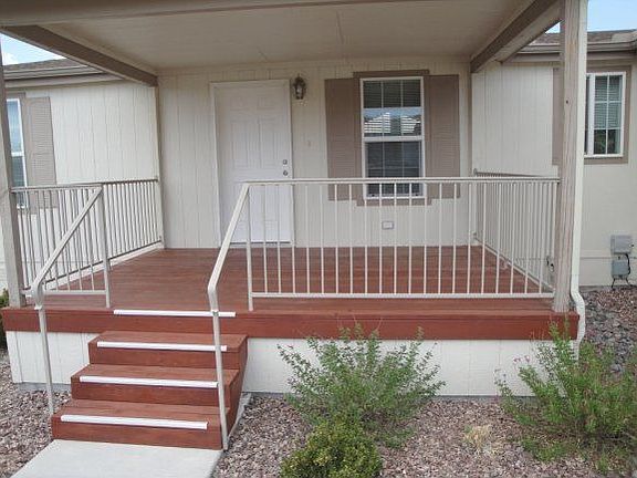 Lovely large manufactured home that looks like a site built home, complete with attached 2 car gar., floor to ceiling fireplace, front & back decks, large open kitchen w/breakfast bar, eat in kitchen, split floor plan, vaulted ceilings, spacious Master Bed & lge. Master Bath, laminate wood flooring in 3rd bedroom, walk-in closets in all bedrooms, views of the Dells & Granite Mtn. from the rear deck, don't miss this nice home, great neighborhood, Owner May Carry
