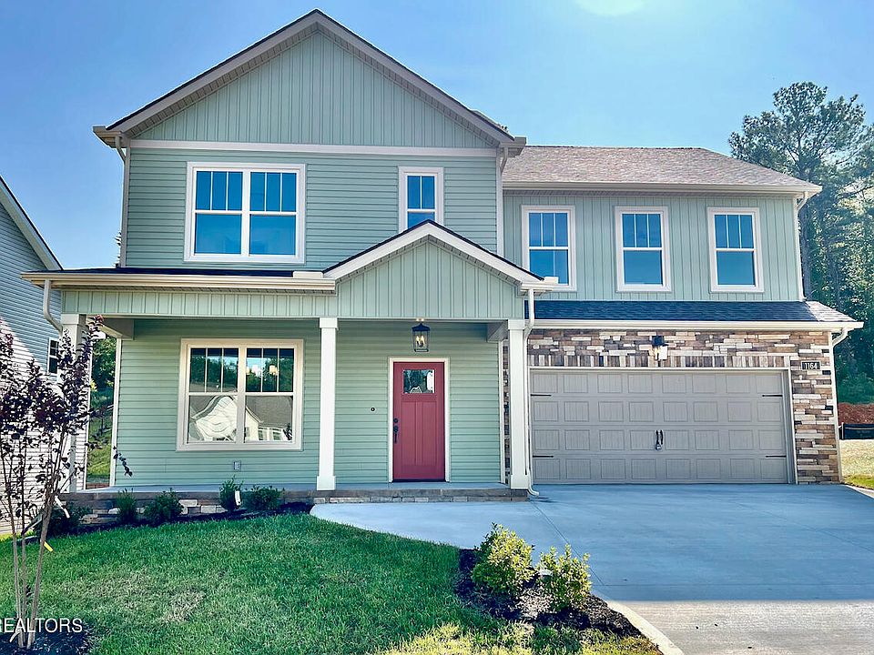 Back on the market due to Buyer's Financing. New construction 15 min. from Downtown Knoxville & Sevierville Exit (I-40). Home provides an open concept, while keeping traditional rooms like a foyer and formal dining room. Kitchen features soft close drawers, pantry, granite tops, stainless appliances including gas range, and a large island making for great work space and kitchen seating. Living room has a cozy fireplace with French doors on either side, opening to a large covered porch, perfect for lounging and entertaining. Mudroom leads to garage, full bath, and 4th bedroom/office. Upstairs, the Master Suite has vaulted ceilings and bath with double vanity, soaker tub, tile and glass shower, toilet room and walk-in closet. Large loft divides Master from 2 more bedrooms with walk-in closets and a full bath. Large laundry room also upstairs, beside the Master bedroom. Home comes with a Builder's Warranty. Buyer invited to conduct a punch list before closing.