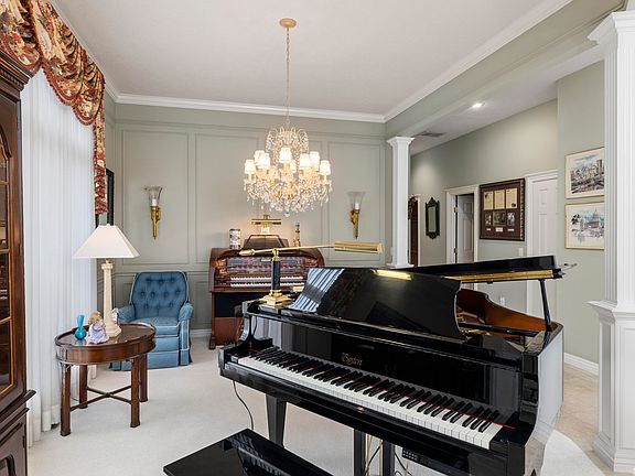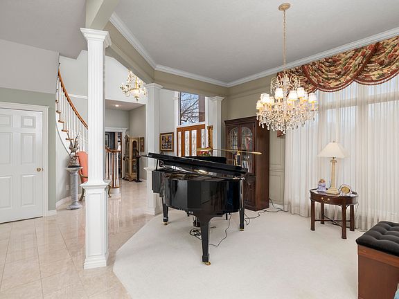 Sellers have moved to their new home and are saying, lets make a deal! You could easily spend a million dollars building this beauty. On a Corner lot/ Cul-de-sac with intricate details in the manicured landscaping, over 20 different varieties of plants and flowering trees. Feel the elegance and skillful craftsmanship in this home with every step you take. Starting with the hallmark circular staircase, one of 2 staircases, Intricate crown moldings, and high caliber woodwork carry over in every room and levelAn abundance of natural light light flows into the front room and beyond with soaring ceilings and plentiful windows. You will find superior flooring in every part of the home, from marble to hardwoods.The study has beautifully built-in bookcases on two sides. The Primary suite has a 3 sided fireplace with private sitting area or nursery. Upstairs you have 3 large bedrooms with uniquely designed en suites. Home features 3 living areas and 3 heat producing fireplaces . The kitchen and family Hearth room are most inviting, You will find the highest quality cabinetry, granite tops, double cooktops gas & electric with grill, a warming oven, multiple sinks, cabinets & counter space galore. The home is wired for sound and intercom system. There is a rated, storm shelter in your oversized 3 car garage. You will find exceptional use of space and overall flow. A true show place for entertaining and living. This home has been lovingly cared for and planned out with surprises along the way. This prestigious, popular community is highly sought for it's attention to every detail for its home-owners. Including weekly lawn mowing, 4 lawn treatments a year, driveway snow removal when more than 3 inches of snow, refuse removal, A guarded gate attendant 7 days a week & a security patrol after hours, A clubhouse with fully equipped kitchen to reserve, large pool, tennis, pickle and basketball courts. A 3 acre fishing pond & chipping green & fitness.