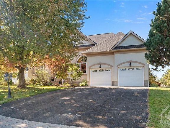 Enjoy country living only 20min from downtown. Bright open-concept 2278 sqft bungalow, w/ high ceilings, on ½ acre in well-established community bordering Sunset Lakes. This home is located in a beautiful sub-division in Greely with no rear neighbours. It backs onto a walking trail, and beyond that, a lake. The many features include 3 beds. The primary suite complete w/ensuite with heated floors & door to the back balcony. The open-concept layout is great for entertaining! The ktchn has granite counters, plenty of cabinet space, an eating area & access to back balcony. The living rm features a gas FP. The lrg dining room is great for big family get togethers. The office, lndry/mud rm complete the main floor. Lrg walk-out bsmnt rec rm has space for your games area, tv , exercise equipment & more. From the LL you walk out onto the patio and fabulous back yard oasis with gorgeous gardens. The upper balcony is a nice place to enjoy the warm summer days & view of the lake! Many upgrades!