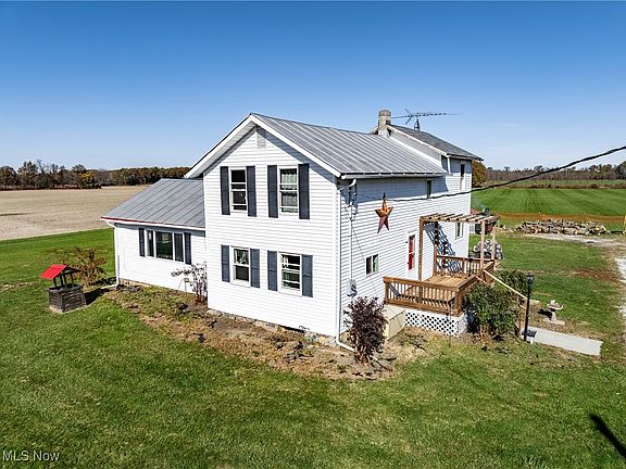 Country living meets modern 3 bedroom, 2 bath farmhouse. Boasting an updated kitchen featuring a breakfast bar with granite countertops, included stainless steel appliances, wood accents & half wall opening to a bright living room with updated vinyl floors. The main floor offers a master bedroom, office, and full bath. Upstairs you'll find 2 additional bedrooms and a large jack & jill bath with a 6ft heated jacuzzi tub. The sunroom is a versatile space with heated floors, perfect for a hot tub, craft room, or cozy winter retreat. Outside offers plenty of space and opportunity with the 80x30 pole barn with 14ft eves, and 3/4th of the roof replaced. Nice 1.5 acre lot waiting for your imagination. Whole house generator, outside wood burner, house roof replaced in 2023. Part walk out basement ideal for extra storage or canning. Don't miss your chance to live in the country while still being minutes from town! Listing agent is related to seller.