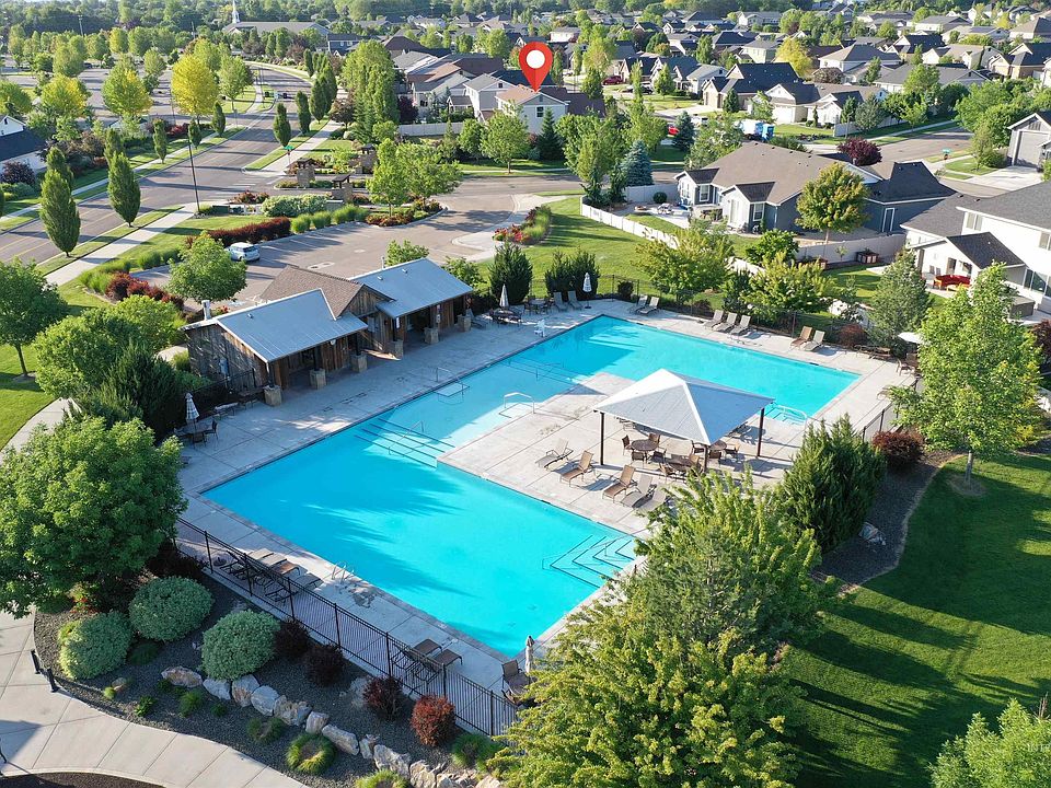 Fall in love with this stunning better than new home in the coveted Fall Creek community! Built by Coleman Homes, this light-filled gem offers rare privacy with no neighbors on two sides. The open floor plan showcases a gourmet kitchen with granite countertops, rich cabinetry, stainless steel appliances, and a walk-in pantry. Relax in the luxurious primary suite featuring dual sinks, two walk-in closets, and serene foothill views. A private main-level guest suite with its own full bath adds flexibility and comfort. Extra deep third garage bay for toys or storage. Step outside to a spacious 20x10 covered patio overlooking a lush, fully fenced backyard, ideal for entertaining or unwinding. Just steps from the incredible community pool, multiple large parks with walking paths, middle school, restaurants and shopping this home blends elegance, comfort, and convenience in one perfect package. Don’t miss your chance to own this Treasure Valley gem!