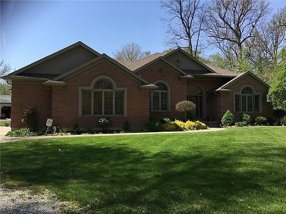 Elegant brick ranch on an open, yet wooded 2.536 acre lot. Built by Drees Construction, this 3 Bedroom, 2 1/2 bath home is built solid. High end finishes include designer cabinets, granite countertops, hard wood floors, casement windows, and crown molding. The large barn adds extra entertaining space with its in-law suite which consist of a living area, bedroom, and full bath). Wood furnace can heat both barn and home OR you can use propane. Don't miss your chance to enjoy the peaceful, serene setting