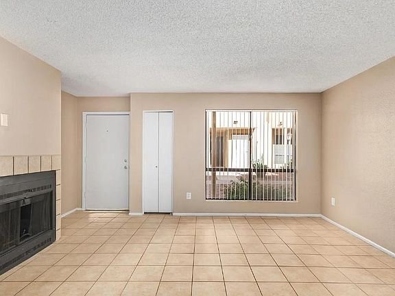 Peaceful community first floor condo in Cactus Flats Condominiums. Home has an open floorplan with real wood burning fireplace in the living room. tile floors living. Separate kitchen with black appliances. Master boasts a full bathroom. Full size washer and dryer included. Walking distance to the community pool. Make this your home today!