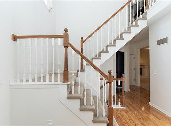 This 4 bedroom 2.5 bath home with finished walk out basement is move in ready! Freshly painted exterior and lots of new interior paint. Formal dining room and front sitting room, open kitchen/hearth room with stainless steel appliances. Huge, fully fenced back yard believed to be the largest lot in the sub-division, comes with sprinkler system and storage shed under the deck. Beautiful hardwoods from an old estate home in the basement match the pool table that stays with the home. TV, surround sound and all component's also stay with the home. Wet bar in basement with fridge and brass sink, perfect for entertaining. Bonus room in basement was previously used as a home office. Meticulous homeowners have kept the home clean and well maintained!