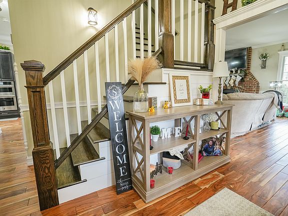 This impeccable home sits on a secluded lot in the desirable Stoney Creek subdivision. This home has captivating scenery from the beautiful trees and the professional landscaped and fully irrigated lawn. You don't miss the sound of the waterfall in the pond! You can relax on your deck after work or on weekends and enjoy nature and cookouts. Very private and relaxing! The inside is just as luxurious as the out. There are stainless steel appliances in your roomy kitchen that is open to the dining area for entertaining. Acacia Hardwood floors, office and a half bath with the family area downstairs. It has a spacious foyer and a beautiful staircase leading to the 4 bedrooms and two full baths upstairs. Amazing family memories can be made for you in this forever home!