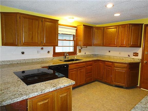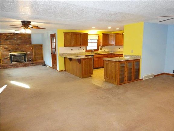 Greenspace galore with this all brick ranch on fenced acreage in Western Olathe. The kitchen has granite counters and tile flooring, and is open to the living, dining and hearth rooms. Covered in-ground pool, outbuildings, and a pond enhance the 9+ acres. The heated pool offers a ramp entry and a slide. Full basement has a wood burning fireplace and is waiting for finishing touches.