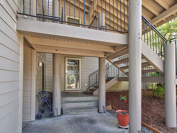 GREAT LOCATION! Amazing corner unit on the ground floor! Privacy and views from every room. Opens to a private patio/yard, mature landscaping and greenery. Walk to Fanno creek park/trails, Proximity to Hwy 217, Washington Square, Shopping, Wholefood, Starbucks & more. Well upgraded with Stainless steel appliances, Newer sink, Granite counters, bamboo floors, pull our shelves, plantation custom blinds, upgraded sinks and counter in the baths & much more. Move in ready. Newer fridge, washer & dryer included. Attached storage shed for convenience. Check out the HOA ameneties. MUST SEE!!