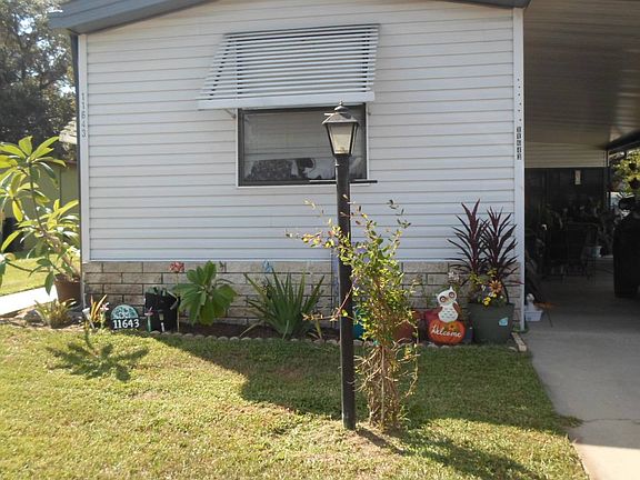 Located in Fishermans Cove, Dade City Fl! This home is on land that is leased and is an age restricted community. You will find a mostly renovated large singlewide manufactured home with over 900 square feet of living space! You will find new flooring throughout the home that was placed diagonally for additional charm! Beautiful New Granite kitchen Counters and all new wood kitchen cabinetry. There are two bedrooms and two bathrooms with one on each end of the home for enhanced privacy. The master suite is nice and spacious but still very cozy too! The home has a very large climate controlled all seasons room which is also a pass through to the huge shed. The shed has the hookups for the washer and dryer so the heat will not remain in the home while in use. There is a large covered carport for two cars. If you only have one, you can use a portion to have a covered patio! This is a must see home! Bring your favorite furnishings and fishing gear for the dock and you are set for year round living or just a winter get away! ( Lot fees are currently only $495.00 for this home). Make an appointment to see it today!