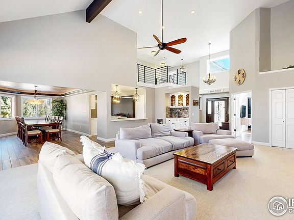 Welcome to this beautifully updated Colorado dream home located in the highly desired Ranch Golf Course Community on a large 17,000 + SqFt lot. Upon entering you are greeted by flowing refinished hardwood floors, new carpet, stunning wood beams, cased windows, plus, remodeled open wrought iron staircase. The chef in your home will love cooking in this stunning kitchen with gorgeous marbled quartz, tile backsplash, walk-in pantry, stainless steel appliances, double microwave/convection oven, prep sink, island with gas range, and breakfast nook. The grand family room features soaring ceilings, floor-to-ceiling brick fireplace, and wet bar. The main floor master retreat boasts a shiplap accent wall, vaulted ceilings, brick surround fireplace, wood beams, skylights, access to deck, walk-in his/hers closets, and 5 piece updated ensuite bathroom with heated floors. The main floor is completed by a powder room with shiplap accent wall, study with french doors, and large laundry room. Upstairs you'll find two bedrooms each with walk-in closets, skylights, and private ensuite baths. The finished basement is the perfect space to host guests or a separate living space with its own entrance, a full kitchen, wine cellar, great room, washer/dryer, and full bath. The large private backyard is a great spot for summer BBQs with a concrete patio with a hot tub, firepit, and pergola. Parking is easy with the large 3 car garage with workbench and storage cabinets. Opportunity to join the private Ranch Country Club which includes pool, tennis, golf, fitness center, and restaurant. Great community with mature trees in Adams 12 5 star school district, and an easy commute to Denver, Boulder, and DIA. Hurry, this dream home could be yours!