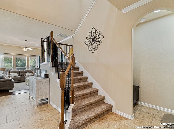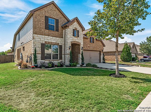 Over 2,700sq ft. of crisp details and impressive quality! This home features 4 bedrooms, 3 1/2 baths, a generous loft/game room and a bonus fully wired media/theatre room. Additionally, there are 3 attic spaces, a 2 car garage and a shed for all your storage needs. The backyard is beautifully designed for entertaining or simply enjoying the quiet peace. Convenient location with an easy drive to Randolph AFB, FM1604, FM78 and I10. It is a must see and will not last long!