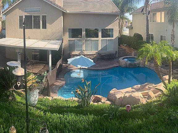 Great opportunity to rent a beautiful home in the desirable South Corona neighborhood. This home is situated in a quiet cul-de-sac. This home features three bedrooms, 2 1/2 bathrooms and an oversize upstairs loft perfect for a game room, office or an extra bedroom. The master bedroom has its very own private bath, double sink and separate bathroom with an upgraded walk-in closet. This home has a spacious three car garage with two overhanging large storage racks and large 40 foot RV parking. The backyard is big enough to entertain family and friends. The backyard includes a rock pool, waterfall, three fire pits surrounding the pool, a Jacuzzi and a covered patio with ceiling fans. There are plantain shutters throughout the home, crown molding and baseboards. There is a fireplace in the family room. This home has an updated white kitchen with stainless steel appliances and quartz countertop. Shopping center nearby as well as highly rated schools. Close to the freeway and easy commute to Orange County. Renter is responsible for all utilities. Owner pays pool maintenance. Pets allowed. No smoking allowed.