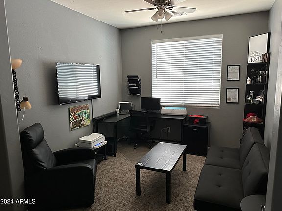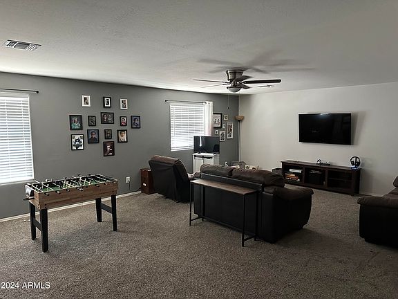 Beautiful 2019 built 4 bedroom 3 bathroom home located just minutes from everything the west valley has to offer. Tile flooring throughout all high traffic areas. Granite countertops with oversized island and breakfast bar. Large master suite as well as a large upstairs den perfect for entertaining. His and her sinks in 2 of the 3 bathrooms. Backyard has new pavers and artificial turf with proper drainage as well as a covered patio. No neighbors to the rear or front of the home. Very quite neighborhood with no access to thru traffic. Tandem 3 car garage with oversized driveway for additional vehicles