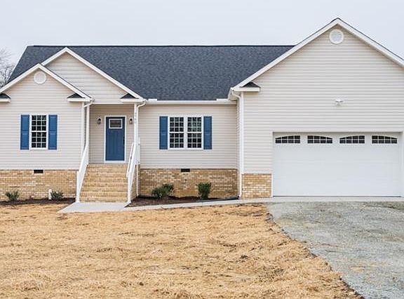 UNDER CONSTRUCTION! This Ranch style home is waiting for you! Sitting on almost 6 acres, this home features 3 bedrooms and 2 full bathrooms with 1,676 square feet of living space. This roomy design has an open floor plan, 9ft ceilings throughout and a REAL two car attached garage. The home boasts luxury plank vinyl wood floors and plush carpet in the bedrooms. The kitchen is a nice size for the busy home cook complete with custom wood cabinets and recessed lighting. The open concept to the family room allows conversation to flow nicely between you, your family or guests and provides additional seating. The large eat-in dining area is spacious enough to suit most needs with direct access to the back deck. The master bedroom is located away from the other two bedrooms and features a private bath with dual vanities and a walk in closet.