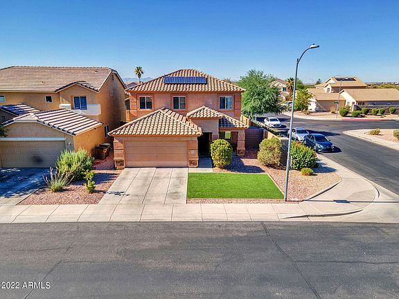 Updated well maintained home on a corner lot. Easy to maintain artificial turf in the front yard. Energy efficient home with a SunRun Solar system. Home also has a new A/C unit that was installed in 2021. Spacious floor plan with updated tile flooring. Gorgeous kitchen with quartz countertops, walk in pantry, stainless steel appliances & beautiful tile backsplash. Home has new ceiling fans, crown molding, new Nest wifi thermostats and is wired for surround sound. There is a nice loft upstairs that can be used as a gym or game room. The backyard has a covered patio & a grassy backyard. Close to Luke Airforce base, numerous golf courses, schools & grocery stores, this is a must see home.