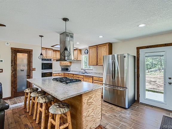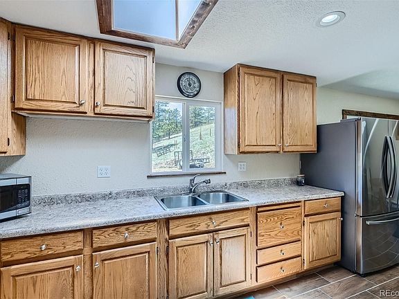 Tucked away from the hustle and bustle of city life, this 3.26 acre property offers unparalleled tranquility and seclusion where you can enjoy abundant wildlife and the crisp mountain air. Boasting a host of modern upgrades and ample space for relaxation and entertainment, this property offers the perfect blend of comfort and natural beauty. Step inside to discover an inviting open-concept layout, seamlessly connecting the kitchen, dining area, and living room. The well-appointed kitchen features sleek appliances, ample cabinet space, and a center island, making meal prep a breeze. The upper level features the primary bedroom complete with double closets and a private deck overlooking the picturesque mountain peak as well as two other bedrooms and one bathroom, providing ample space for family and guests. Retreat to the lower level, where you'll find a spacious family room, fourth bedroom, and additional bathroom, offering endless possibilities for living, working, and entertaining. Experience peace of mind with recent updates including a new furnace, energy-efficient windows throughout the home, and 16 owned solar panels ensuring comfort and savings year-round! With an oversized garage, there's plenty of room to store your vehicles, outdoor gear, and recreational equipment. Whether you're an outdoor enthusiast or simply enjoy tinkering in the workshop, this garage has you covered. This property is truly the best of both worlds with a quick commute to the metro area or head deeper into the mountains to explore trails and nearby Eldora Ski Resort. Less than 0.5 mile to the local retail area with gas stations, liquor store, coffee shop & nearby restaurants, and less than 3 miles away from the exceptional Coal Creek Canyon K-8 School.