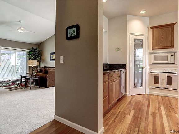 Lovingly maintained & rare ranch home located in the much sought after Weatherstone neighborhood. Pride in ownership can be seen throughout! Located on a quiet street, just across from the beautiful park, close to trails, offering a community pool & clubhouse, shopping, dining and many amenities. You won't be disappointed with the handsome hardwood entry, plush new carpeting throughout, the open concept feel, a partially finished basement that's ready for your personal touch and the serene back yard featuring mature fruit trees, perennials, flagstone walk way & a cozy pergola. Upon entering from the large covered front patio, you'll be welcomed by hardwood floors that flow into the well appointed kitchen & spacious family room with vaulted ceilings, cosy corner gas fireplace and dining room. The spacious kitchen features a separate dining nook, slab granite counters, generous cabinet space, a pantry, gas range, wall oven, built in microwave, updated kitchen refrigerator & updated dishwasher. Just down the hall from the family room are two guest bedrooms (or make one bedroom an office/study), guest bathroom with shower/tub combo & sink vanity. Journey to the spacious master suite with bay windows that look out to your private back yard oasis....you'll be delighted by the private feel of the master suite featuring a bathroom ensuite with soaking tub, walk in shower, private water closet, dual sink vanity & a large walk-in closet. Main level laundry room with washer/dryer included. The partially framed full sized basement has endless potential, a bathroom rough-in, room for 2 bedrooms, family room and storage area! Numerous updates including new carpet, newer water heater, newer garage door, certified/inspected roof 2018, some newer windows, energy saving/low utilities Tesla solar and radon mitigation system. Truly a peaceful sanctuary, the back yard is a gardener's dream. Close to trails, open space, The Highline Canal, Sprouts, Starbucks, Home Depot and much more!